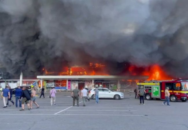 Наразі невідомо, скільки людей постраждали та загинули в результаті удару, однак на відео можна побачити сильну пожежу, якою охоплено торговий центр.