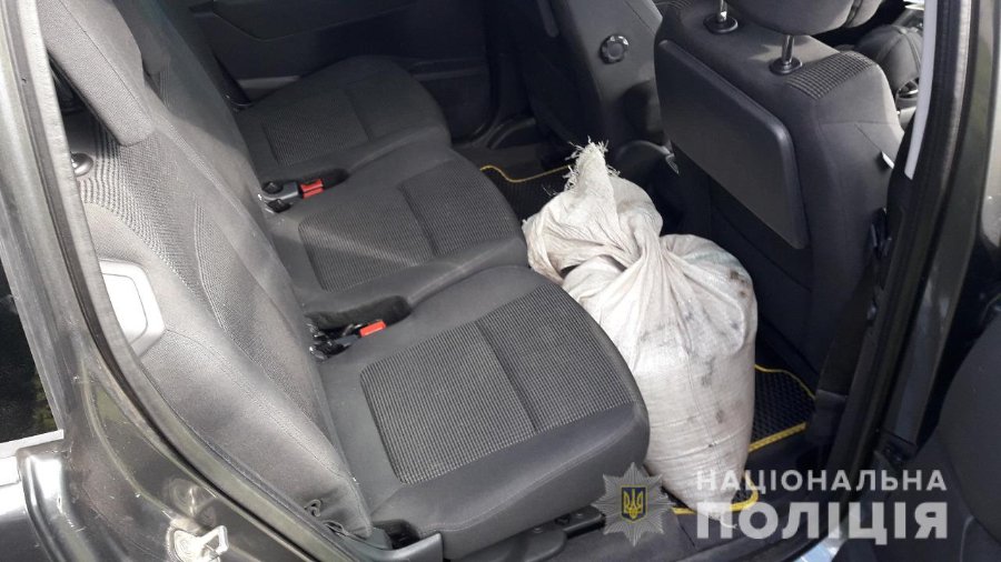 Під час перевірки документів та огляду транспортного засобу поліцейські виявили у автомобілі полімерний пакет з камінням дрібної фракції, коричневого кольору, ззовні схожого на каміння бурштину, загальгою вагою близько 100 кг.