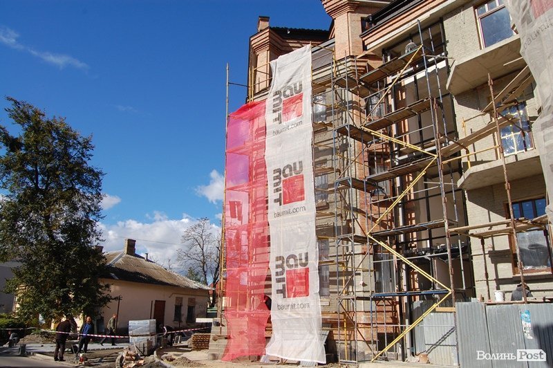 У самому центрі Луцька тривають будівельні роботи з реконструкції оригінальної модернової споруди, зведеної ще на початку минулого століття.