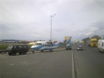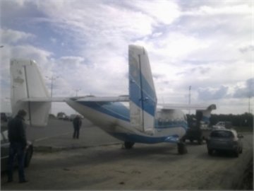 Як з’ясувалося, літак (попередньо ‒ АН-28) перевозили за допомогою буксира з аеродрому «Чайка» в музей авіації на території аеропорту «Київ» (в Жулянах). У цей час повз проїжджала Skoda Fabia, яка зіткнулася з позашляховиком. У легковика ‒ зім’ята передня частина.