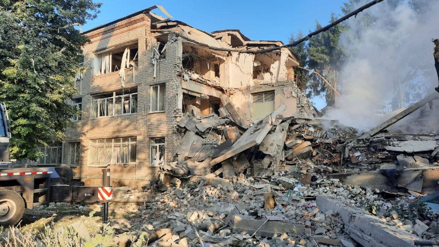 За ціль військові терористи обрали загальноосвітню школу. Зараз рятувальники розбирають завали. Попередньо - постраждалих немає, у гімназії нікого не було.