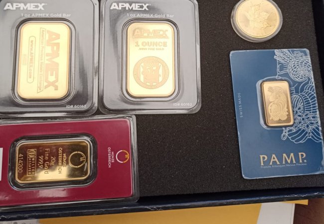 4 вироби з металу жовтого кольору прямокутної форми та 1 монета, усі позначені написом Au 999,9 загальною вагою понад 120 грам містились серед консолідованого вантажу. Він складався із засобів особистої гігієни та електроніки і слідував з Лондона до київського імпортера.