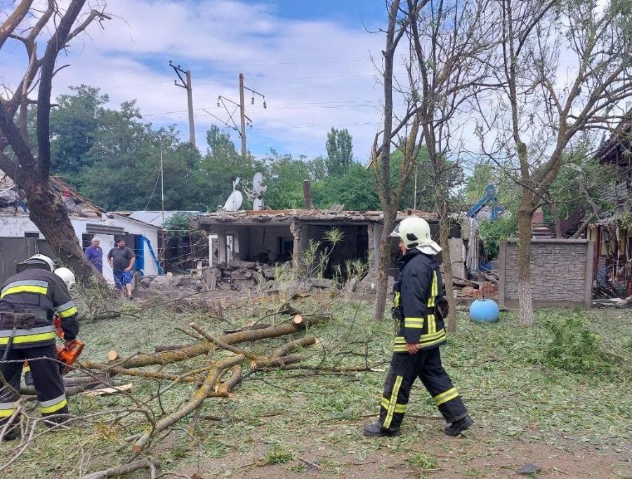 Ударною хвилею пошкодило прилеглі будинки, дерева, автівки. Пожеж не виникало. Постраждалих немає. На місці події з розбору завалів працюють рятувальники.