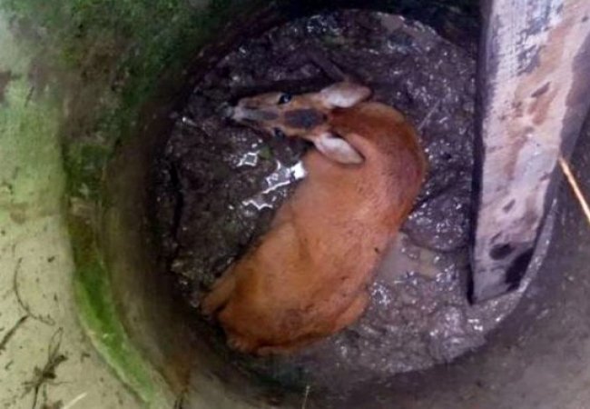 На Волині з покинутого колодязя врятували косулю. ФОТО