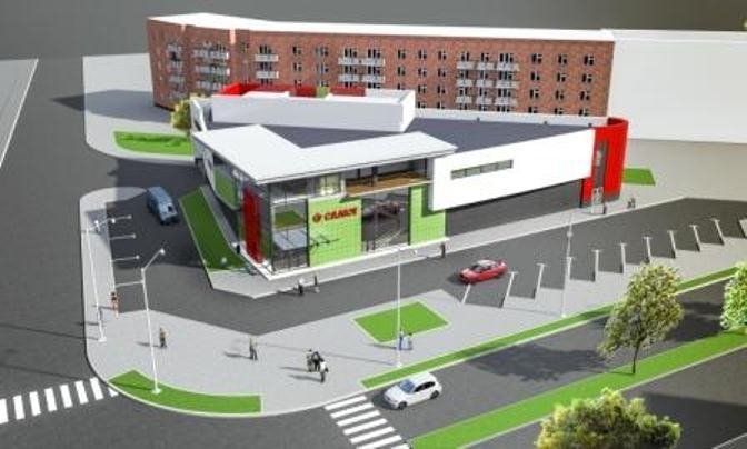 На першому поверсі буде розміщено торгова зала площею 562,4 кв.м з підсобними приміщеннями, на другому – кафе на 48 місць, третій поверх запроектовано двома площами ‒ 103,6 кв.м та 123 кв.м. На цьому поверсі запроектовані антресолі і лоджії кафе, машинне відділення для ліфта, технічне приміщення та окремий вихід на покрівлю будівлі.