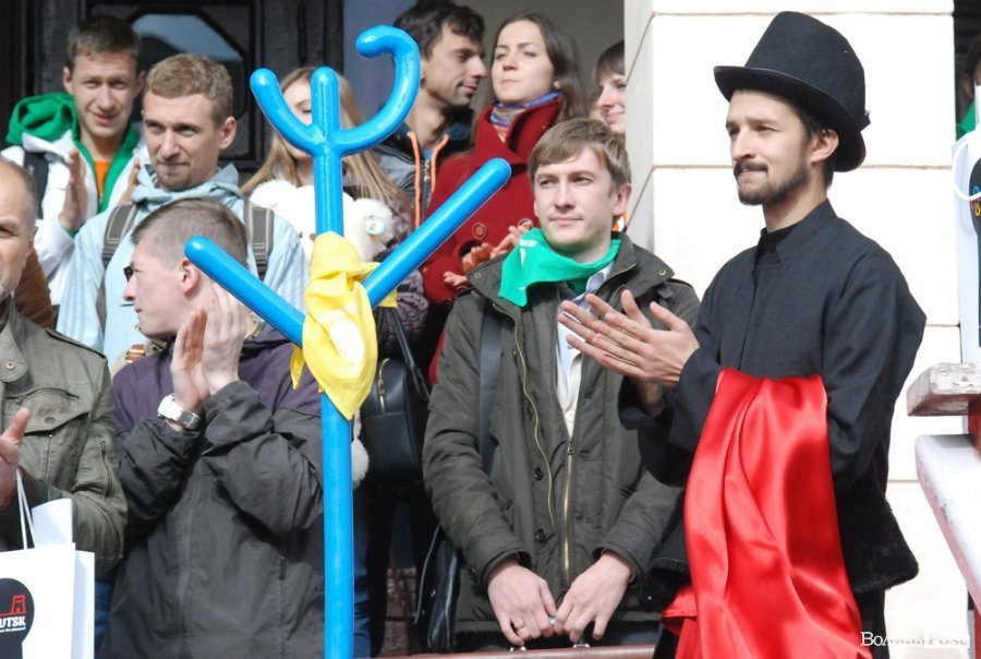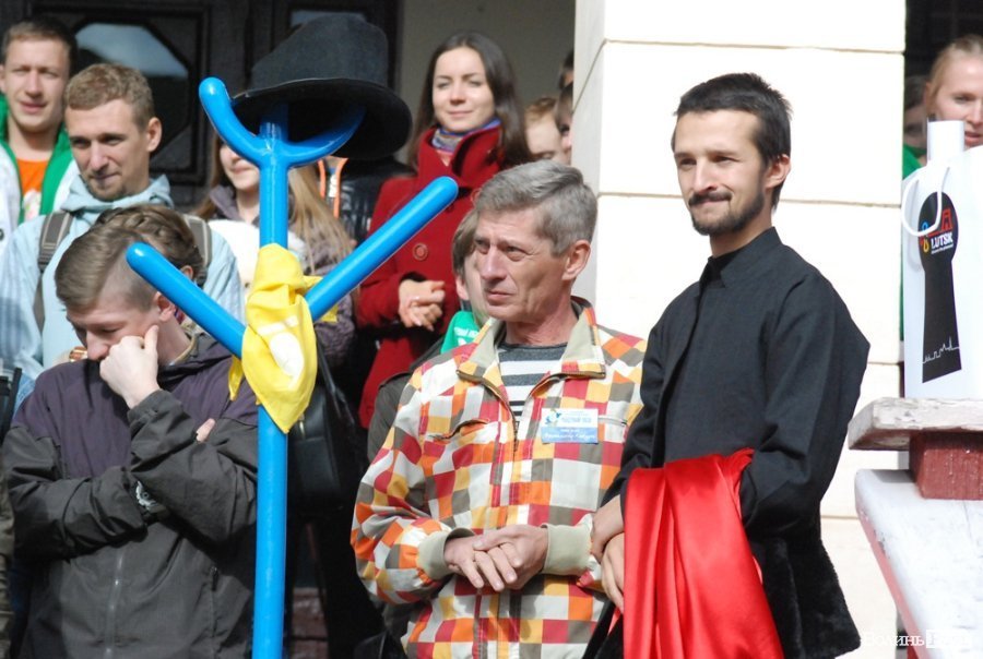 Опісля виступали посадовці, презентували символ заходу - синій вішак у вигляді фігури людини.