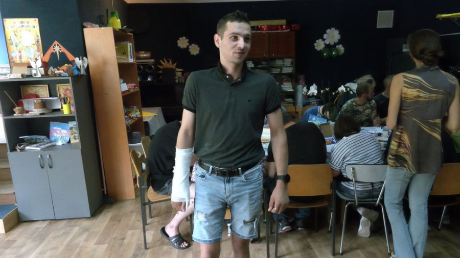 Військовослужбовець Віталій з Черкас майже місяці в одному із медичних закладів Волині лікує осколкове поранення ноги. Чоловік вже не вперше боронить Україну. Каже: арттерапевтичні заняття допомагають йому розважитися.
