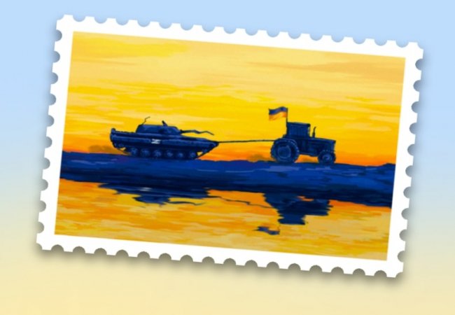На поштовій марці «Доброго вечора, ми з України!» відтворено реальні події, які мали місце на Миколаївщині: український трактор тягне покинутий російський танк. Автором ескізу стала дизайнер-графік та викладач живопису Анастасія Бондарець. Нагадаємо, тематику поштової марки було обрано завдяки народному голосуванню. В травні понад 600 тис українців з-поміж 5 варіантів обрали саме «Доброго вечора, ми з України!». На конкурс ескізів було надіслано понад 1500 робіт.