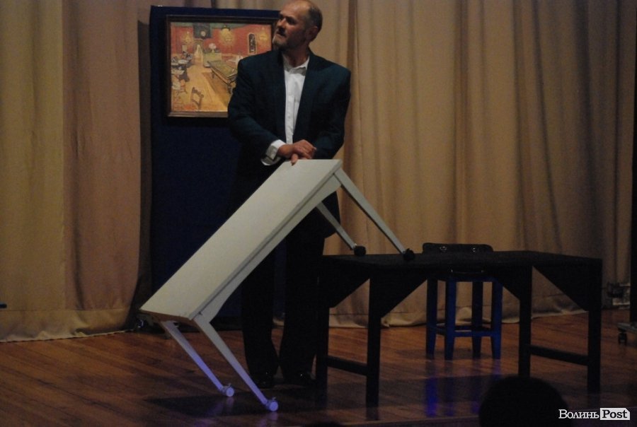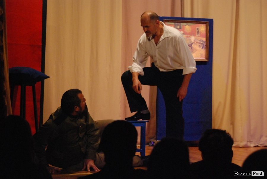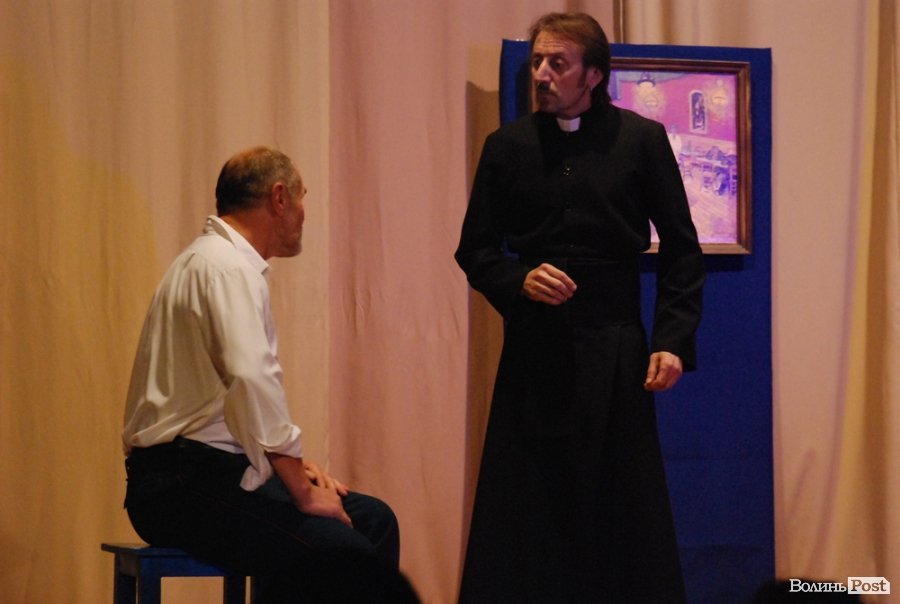 Завершувався фестивальний день ще однією драмою. В Луцькому районному будинку культури, що на вулиці Ковельській, один з членів журі Петро Панчук та його колеги з Бориспільського муніципального театру показали виставу "Батько" за твором шведа Августа Стрінберга.