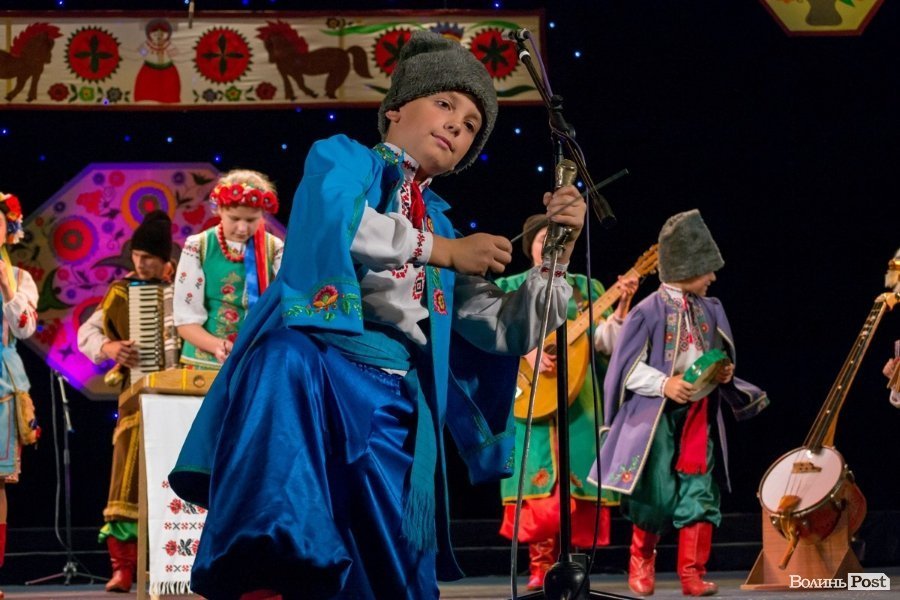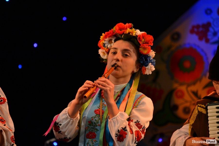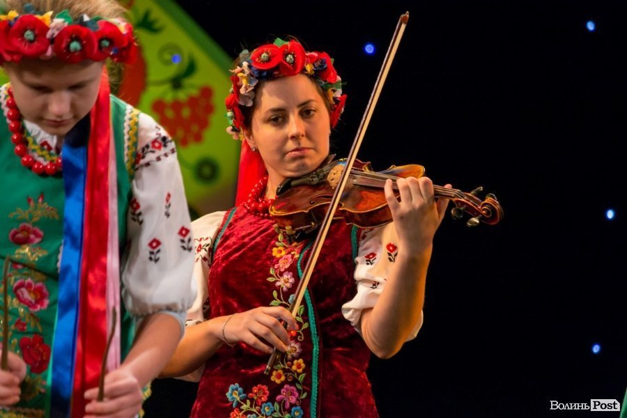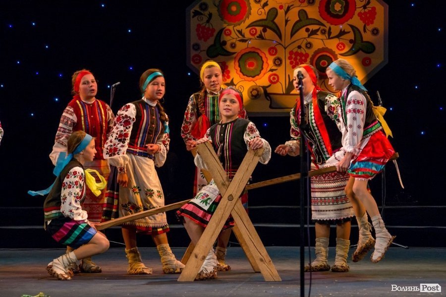 У суботу в приміщенні Волинського академічного обласного музично-драматичного театру імені Тараса Шевченка пройшли оглядини народних інструментальних ансамблів, ігри та забави дитячих фольклорних колективів та обжинкове фольклорне дійство.