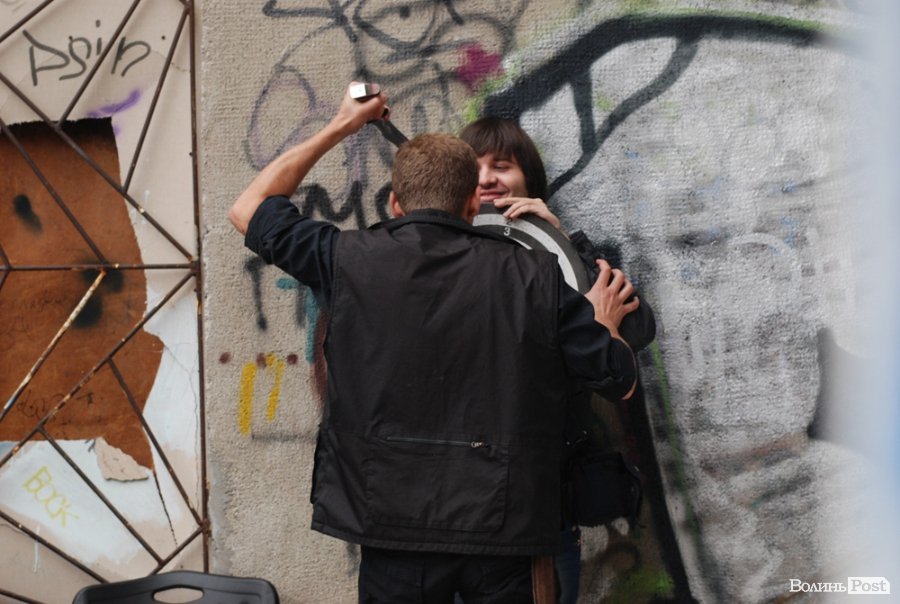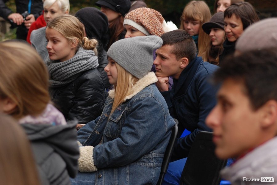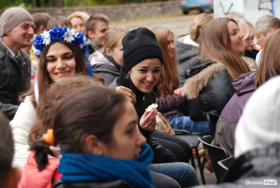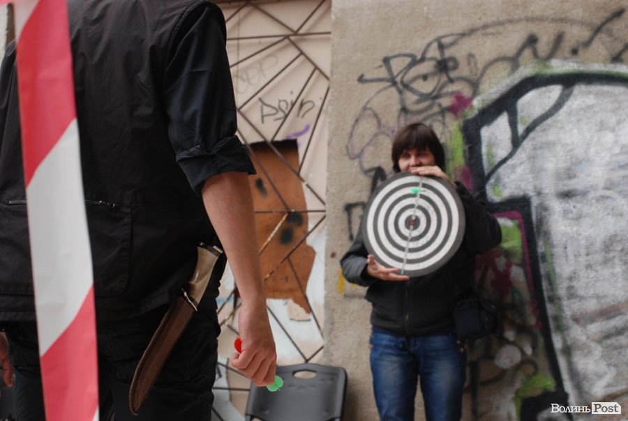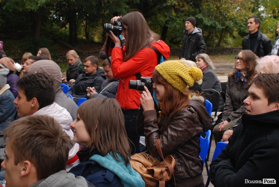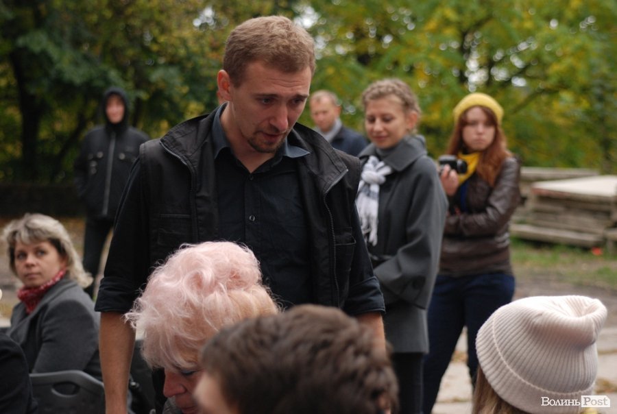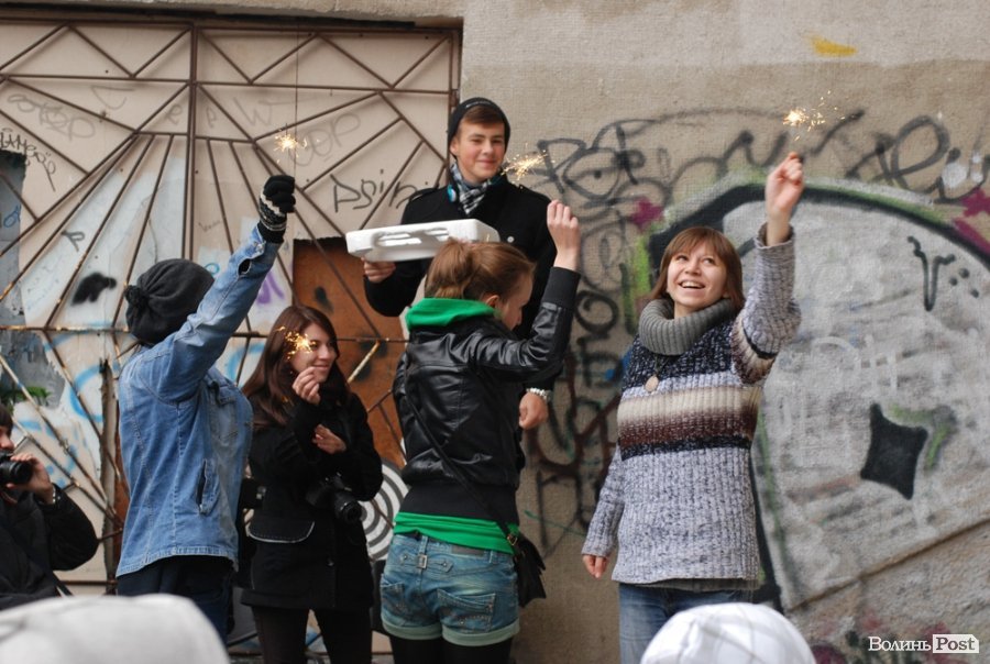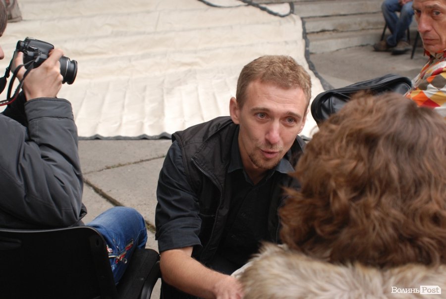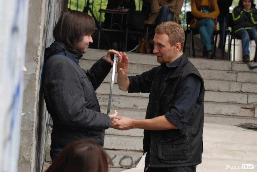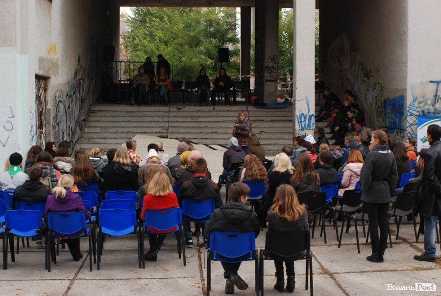 Власне це була моновистава, бо на сцені, яку облаштували на сходах справа від входу в Палац учнівської молоді, був один актор, але за час імпрези від залучив до дійства кільканадцять глядачів.