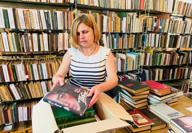 Зараз працівники книгозбірні готують книжковий вантаж до відправлення.
