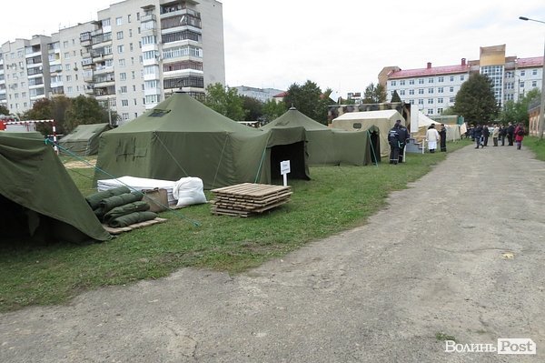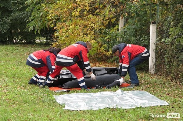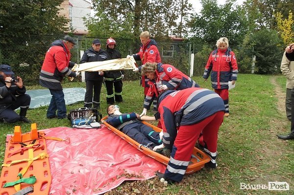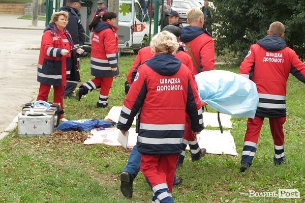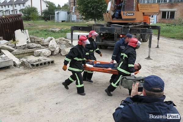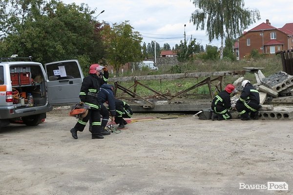 У Луцьку внаслідок «вибуху» на котельні на вулиці Загородній загинуло 2 осіб: такий сценарій розіграли під час навчань волинські рятувальники 1 жовтня.