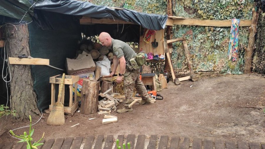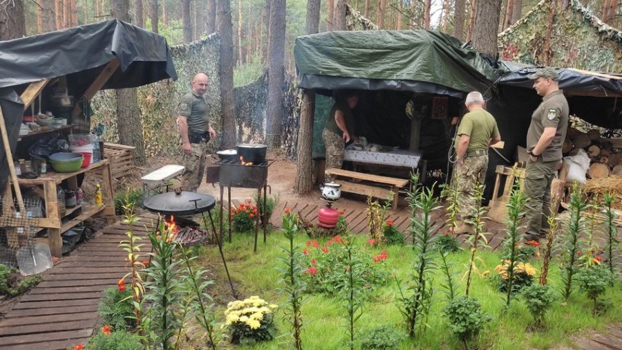 Бойові позиції у лісах бійці волинської тероборони облаштовують як господарі біля хати. Біля намету між соснами засіяли газон, посадили квіти, виклали дерев’яну доріжку, налагодили подачу і нагрів води, а також встановили мангал і сковороду-диск, щоб готувати улюблені страви.