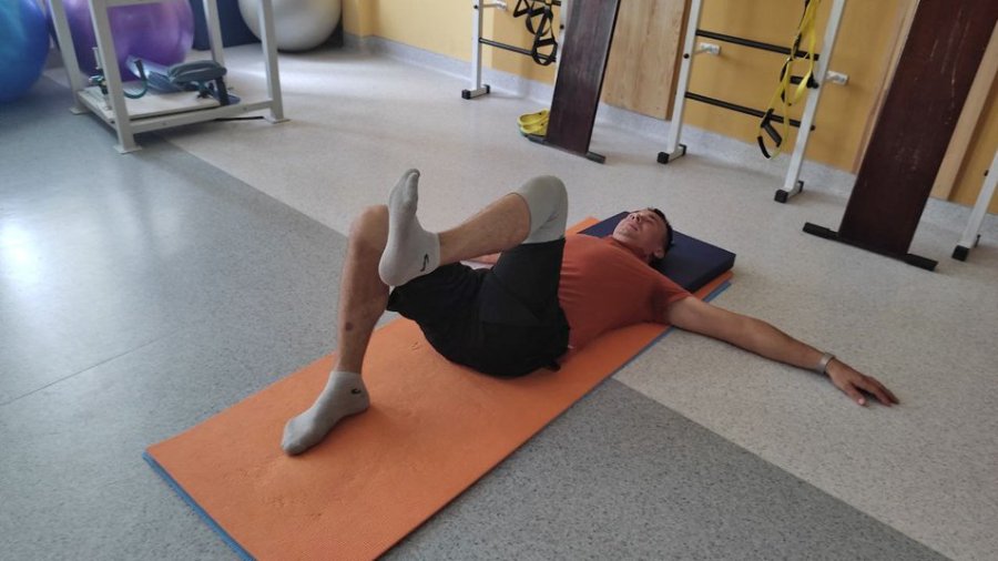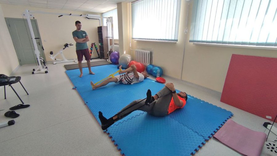 Третій курс реабілітації отримує військовий Віктор Дудюк із Ковельського району. Виконує вправи для зміцнення колін і м’язів спини. Каже: відновлюється після травми унаслідок мінно-вибухового поранення.