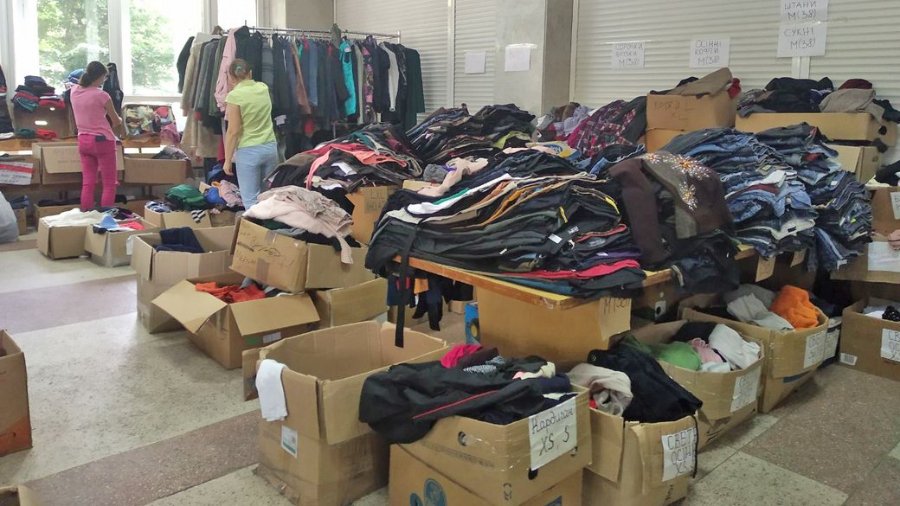 Зі слів волонтера Андрія Хомича, до центру допомоги люди приносять різноманітні речі: одяг, взуття, дитячі іграшки, постільну білизну, матраци, ковдри, подушки тощо. Жителька Луцького району Антоніна розповіла: привезла чоловічий та жіночий одяг, аби допомогти переселенцям.