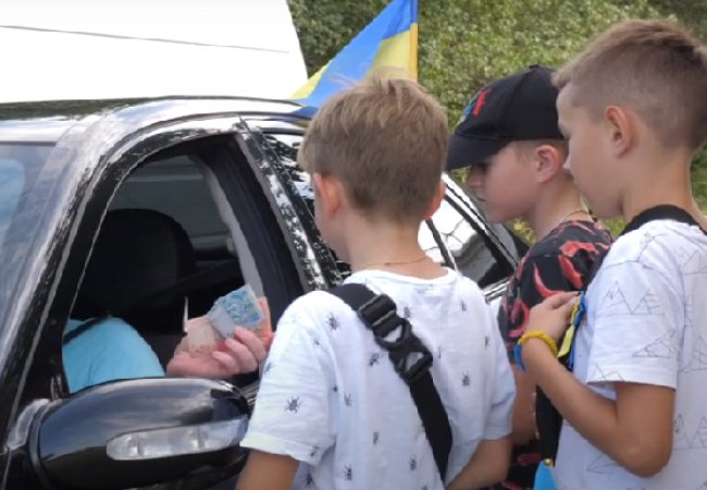 У Луцьку на імпровізованому блокпості діти щодня збирають по кілька тисяч гривень для ЗСУ. ВІДЕО