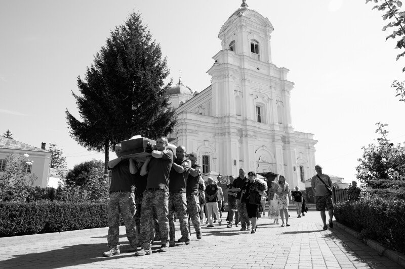 Після богослужіння процесія з труною вийшла з храму на Театральний майдан, де вже зібралося чимало лучан. Перехожі зупинилися, схилили голови і зі сльозами на очах провели армійця в останню дорогу. Церемонія прощання з Героєм завершилась виконанням Гімну України.