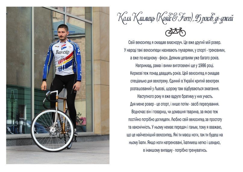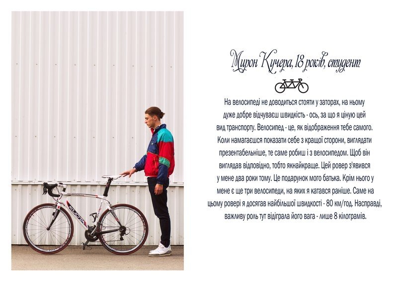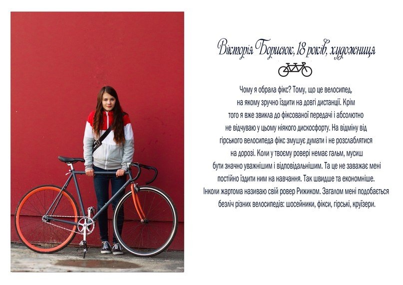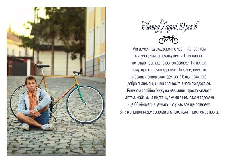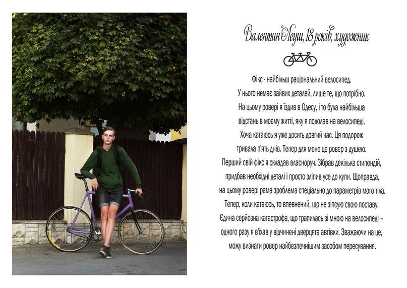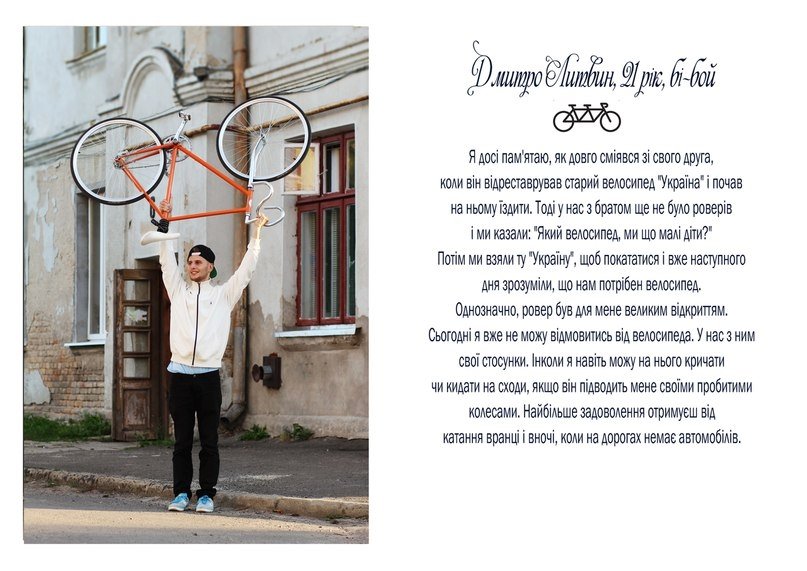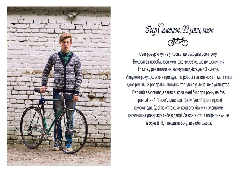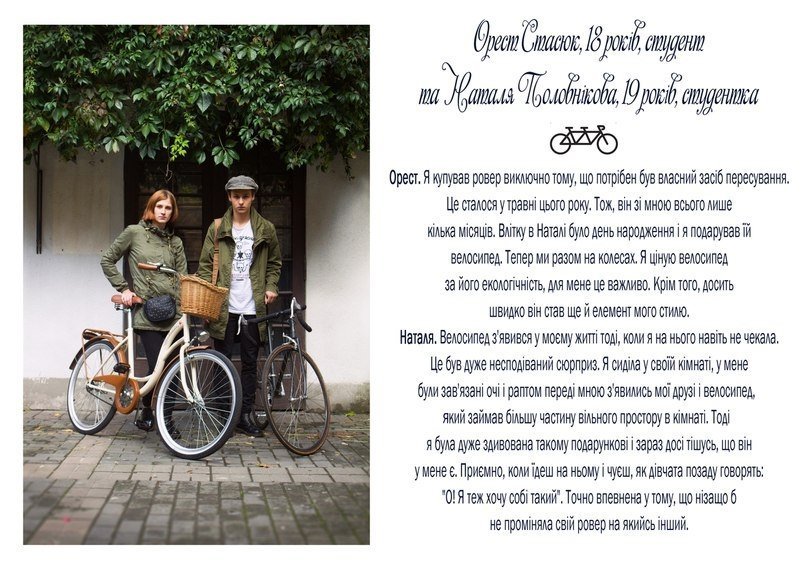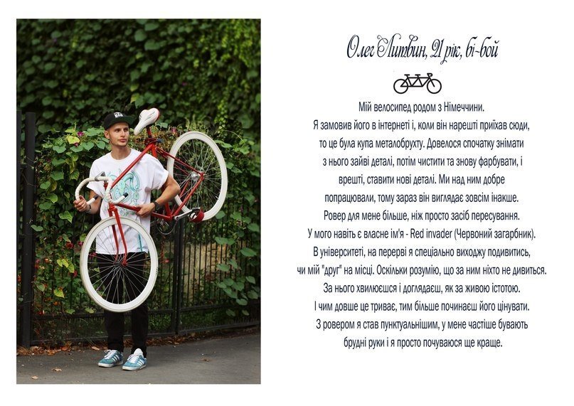 "Проект в тексті і зображенні розповідає про стосунки молодих людей з їхніми велосипедами", - кажуть вони.