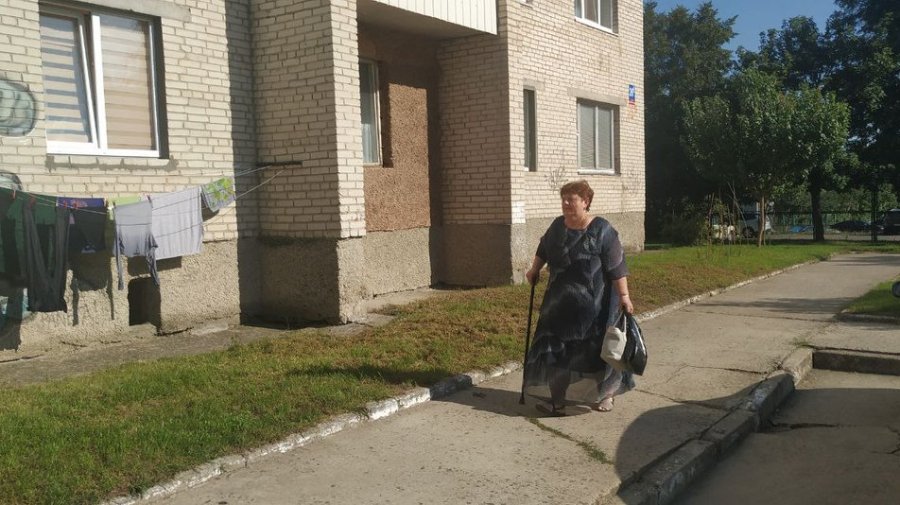 Мешканка будинку, 58-річна лучанка Олена Царук, має інвалідність. Жінка проживає на дев'ятому поверсі та щодня змушена спускається сходами.