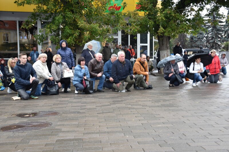 По завершенню панахиди домовини із тілами воїнів під звуки дзвонів і солдатської сурми прощальною ходою пронесли Театральним майданом. Біля фотостенду “Герої Небесної Сотні — Загинули за єдність України” траурна процесія зупинилася і виконала Державний Гімн.