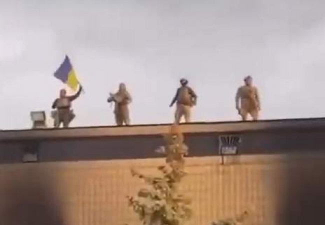 Він оприлюднив відео, на якому можна помітити згорілу будівлю міськради Ізюма. На його даху стоять бійці ЗСУ з українськими прапорами.