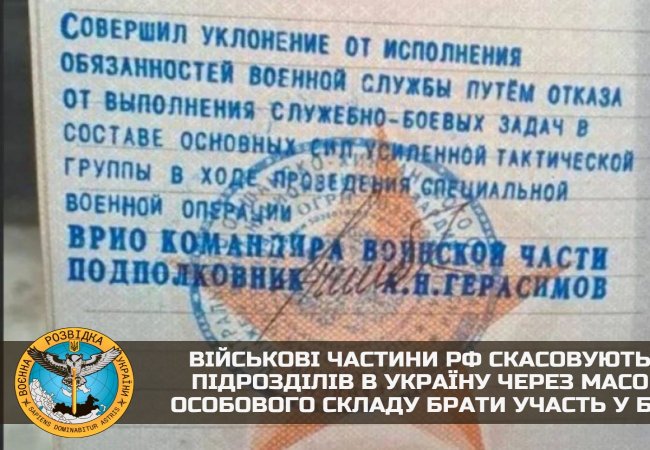 Військові частини РФ скасовують відправку підрозділів в Україну через масові відмови особового складу брати участь у бойових діях.