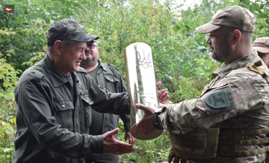 Під час урочистості волонтери Олег Ганжа та Олег Хрипун вручили Князівським артилеристам іменний мотиваційний прапор бригадної артилерійської групи, фронтовий пікап та купу потрібних на фронті "ніштяків", серед яких потужний дрон.