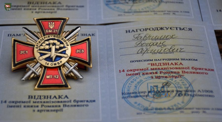 Воїнам-артилеристам 14 ОМБр імені князя Романа Великого сьогодні, 16 вересня, на передових позиціях вручили державні та відомчі нагороди.