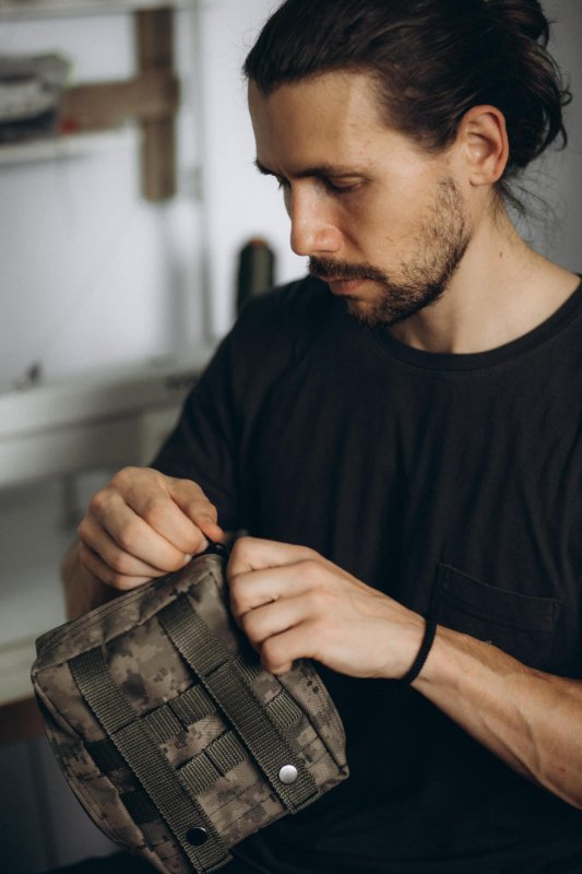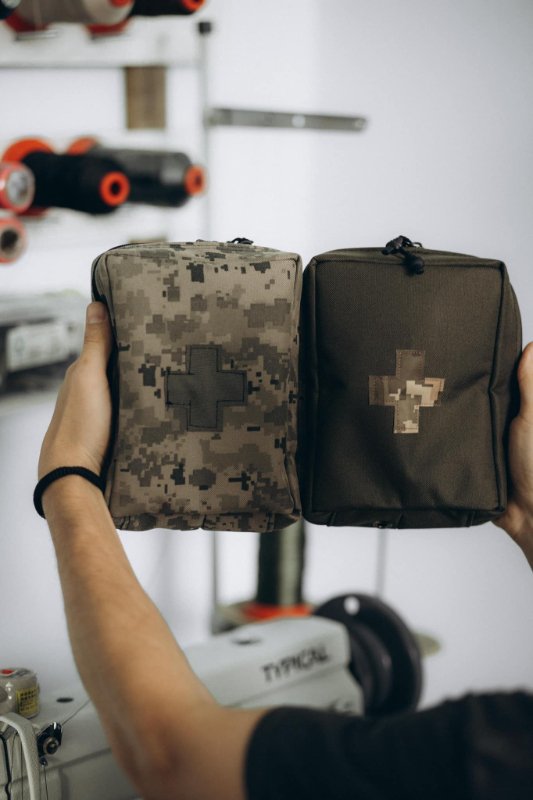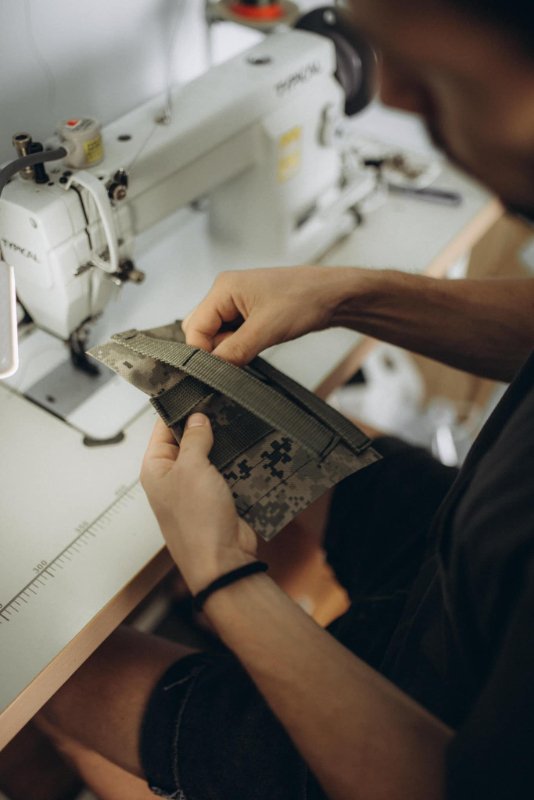 «Набрав до мене якось товариш, який зі шкіри виробляє, сказав, що буде тепер аптечки шити. Я запропонував допомогу, хоча того не вмів зовсім. Ми зібрали команду швачок і почалося. Спочатку підсумки були на липучках, не надто, може, якісні. Але щоразу шили краще і краще», – зауважує відеограф.