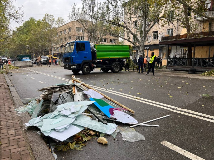 Руйнування також отримали магазини, які розміщені на перших поверхах цих будинків. Крім того, пошкоджено також приміщення міського виставкового залу.