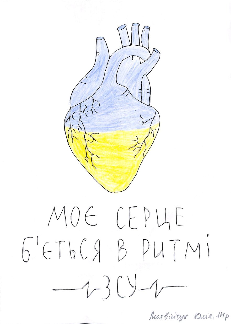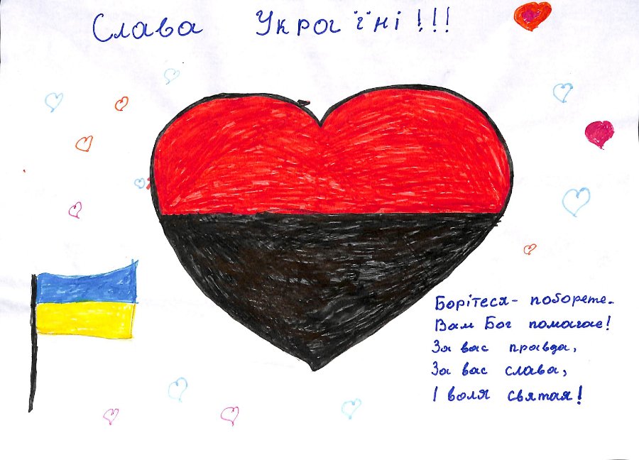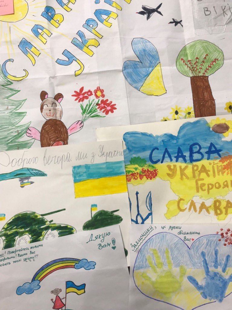 Понад 200 витворів дитячого мистецтва разом з печами-буржуйками та теплими речами також відправлять до військових. На малюнках дітей зображені військові, військова техніка та синьо-жовтий прапор України. Крім того, вони містять теплі слова на адресу військовослужбовців: «З Україною в серці», «ЗСУ молодці». Щире дитяче тепло, любов та зворушливі слова надихають, підбадьорюють та підтримують дух українських воїнів.