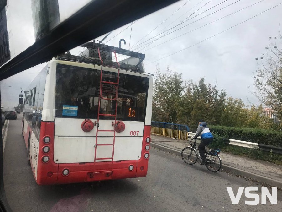 За їхніми словами, наразі рух дорогою ускладнений, і на цій ділянці зібралося до десятка тролейбусів.