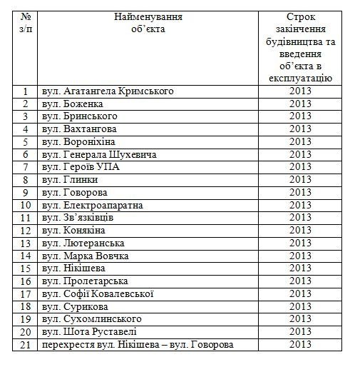 У перелік вулиць, які за кошти міського бюджету хочуть відремонтувати до кінця 2013 року, ввійшов 21 об’єкт.