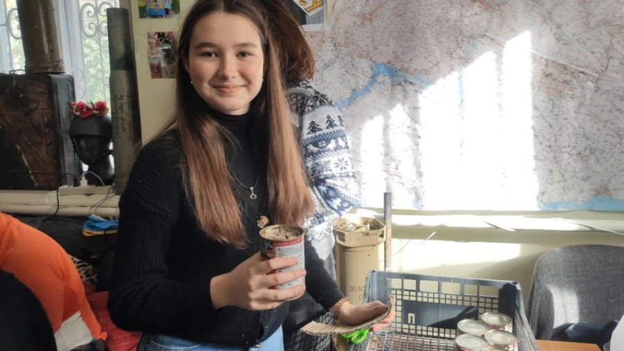Разом із дорослими волонтерами працюють діти. Школярка Марія Репш вдруге разом із подругами таким чином прийшла допомогти армії.