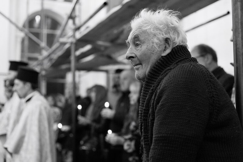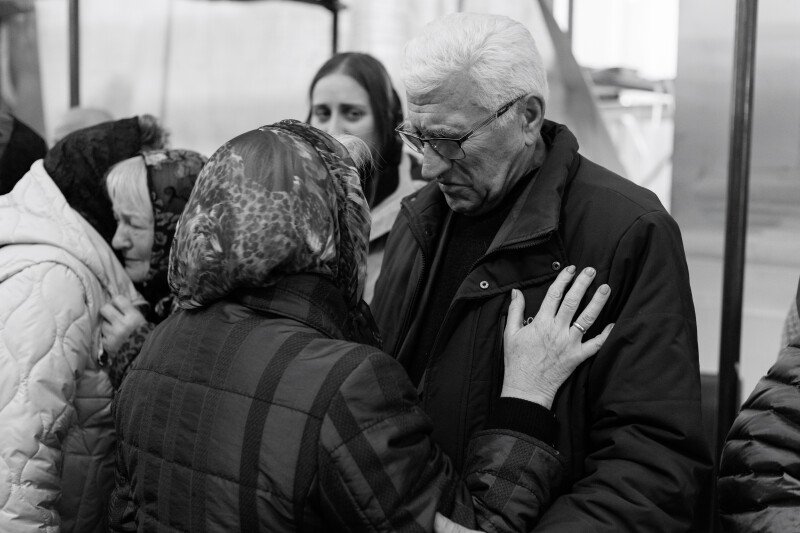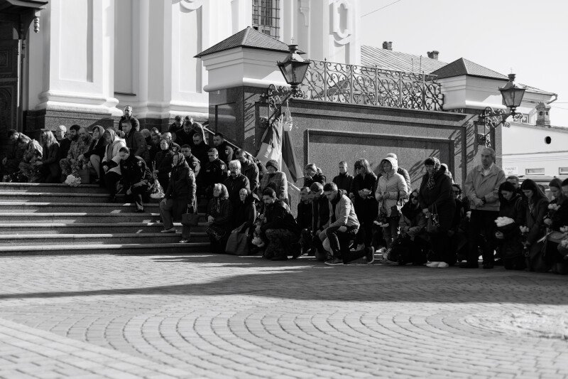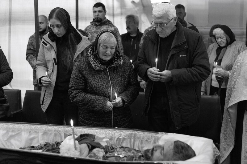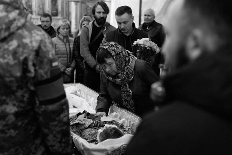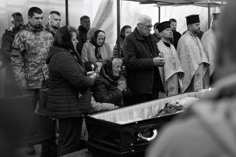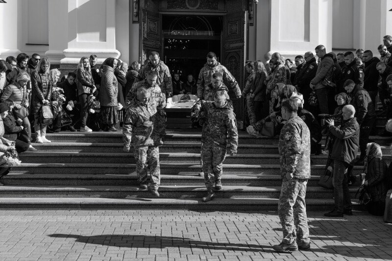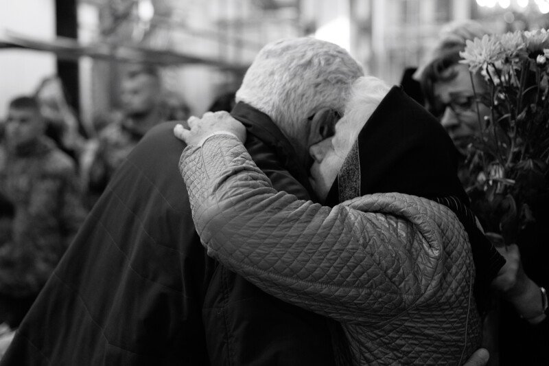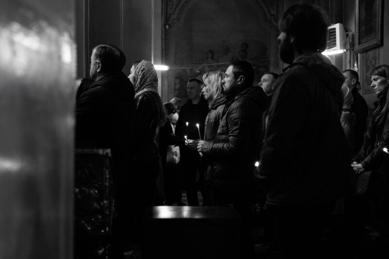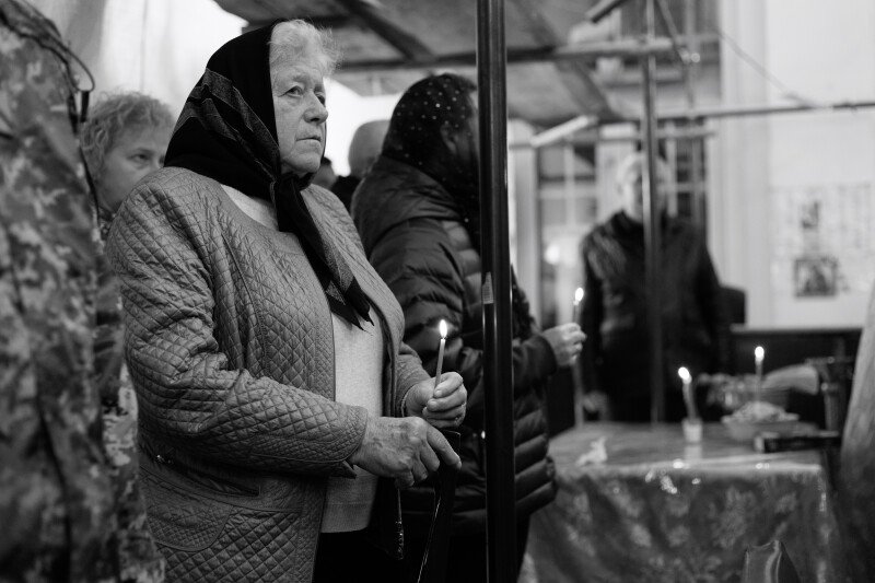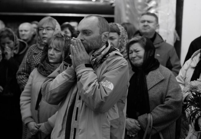 Зі слізьми на очах прийшов до храму 64-річний Віталій. Олександра, каже, особисто не знав, але похорони бійців намагається не пропускати.