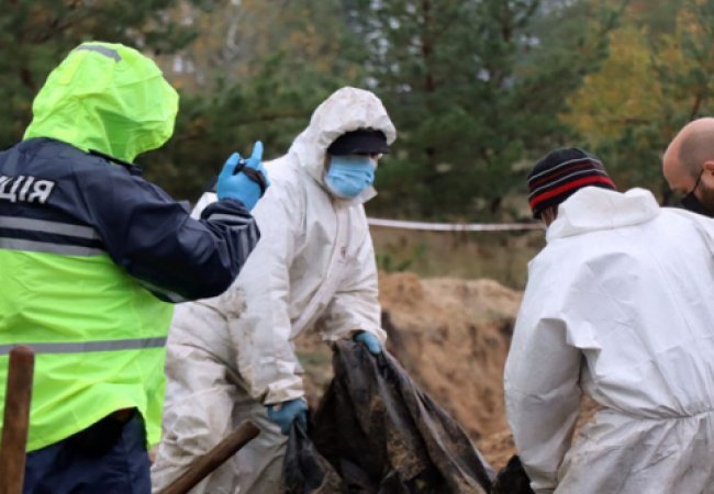 Тривають розкопки на місцях масового поховання в Лимані. За тиждень кропіткої роботи поліцейські вилучили тіла 56 людей. Вживаються заходи щодо ідентифікації загиблих і встановлення причин їхньої смерті.