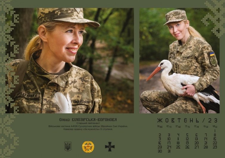 Завершує календар снайперка Олена Білозерська з лелекою