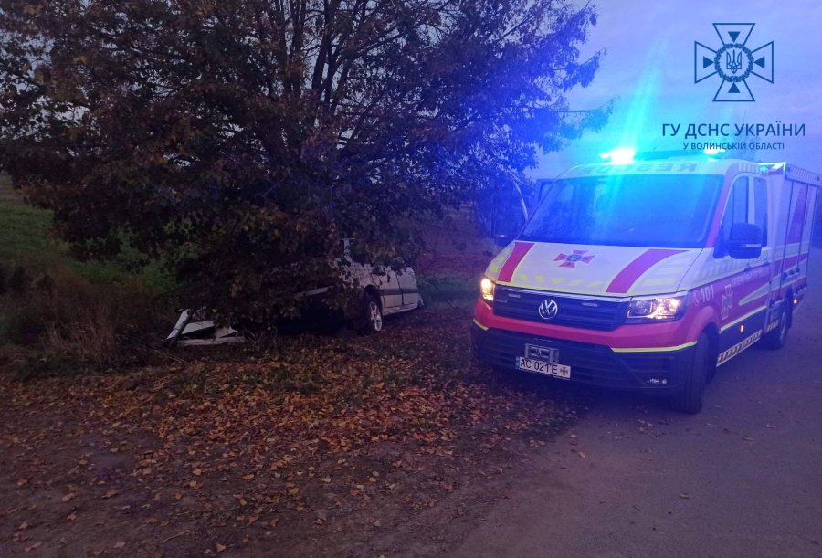 21-річний водій влетів у дерево на Волині: його госпіталізували. ФОТО