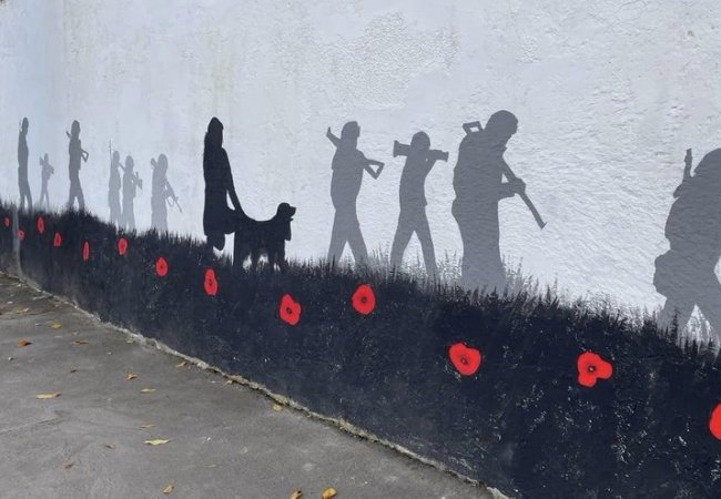 На муралі зобразили героїв сьогодення. Зокрема, на одному фрагменті – образ прикордонниці-кінологині Аліни Паніної з Нововолинська, яка була звільнена з російського полону 17 жовтня.