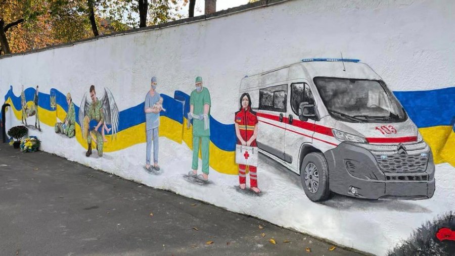 Також на стінописі зображені фельдшери швидкої допомоги, які нині працюють у Нововолинському відділенні.