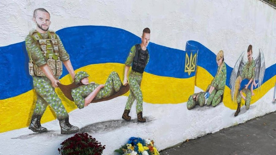 На території центральної міської лікарні Нововолинська двоє художників намалювали патріотичний мурал. Над його створенням працювали від початку літа, презентували роботу 18 жовтня.