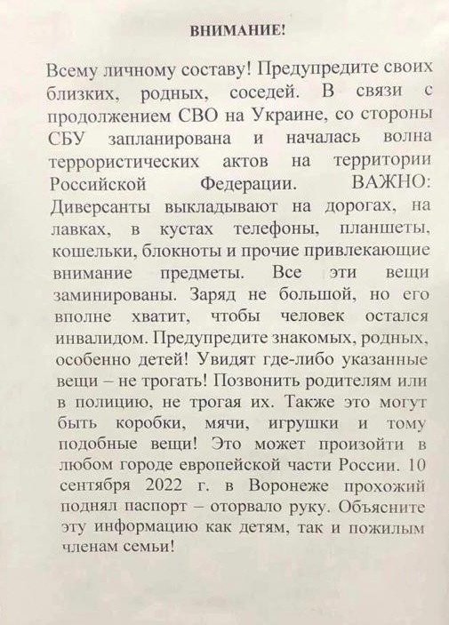 Військкомати на території РФ розповсюджують «пам’ятки» для місцевих жителів, в яких звинувачують українські спецслужби в плануванні та проведенні терористичних актів проти мирного населення.