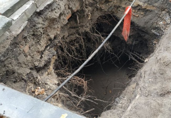 Глибина провалля становила майже три метри, ширина – 2,5 метра. Такий пролом у ґрунті міг утворитися через тривалі дощі, що потрапляли в комунікації, – зазначив археолог і студент Богдан Омельчук, який брав участь у дослідженнях. З його слів, шари на об'єкті знімали поступово, аби не провалитися під землю.