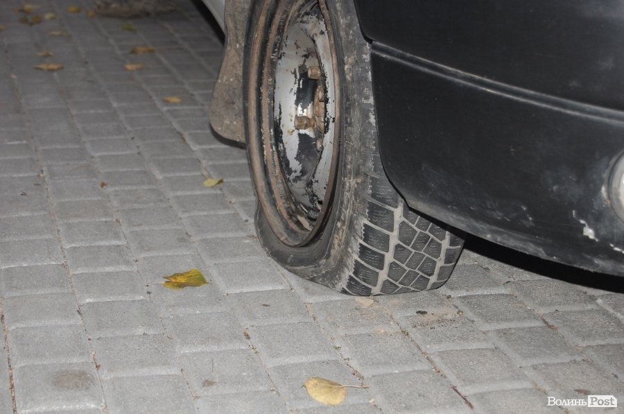 Пошкодження на легковику виявили лише вранці у четвер, 10 жовтня. «Побили крило і чотири колеса прокололи. Стояла нормальна, нова машина», – кажуть постраждалі.