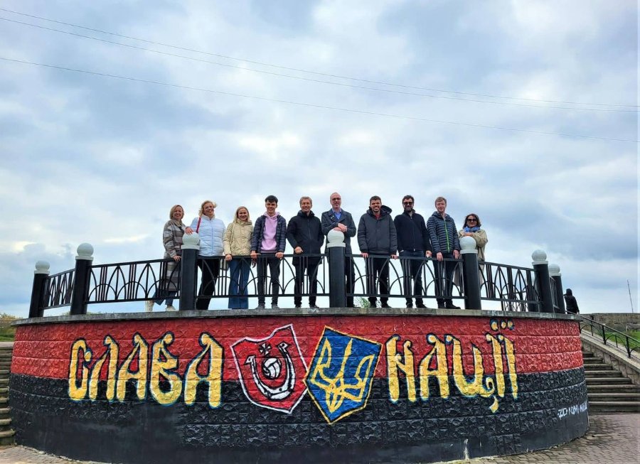 «Наші волонтери МАРЛОГУ Рафаель Клепарді, Паша Оксенюк, Люда Зубарєва, Олівер Пенні з Великобританії , Інна Поліщук, керівник ГО “EuroFuture NGO”, разом з представниками мерії познайомили Брайана з містом та його життям.