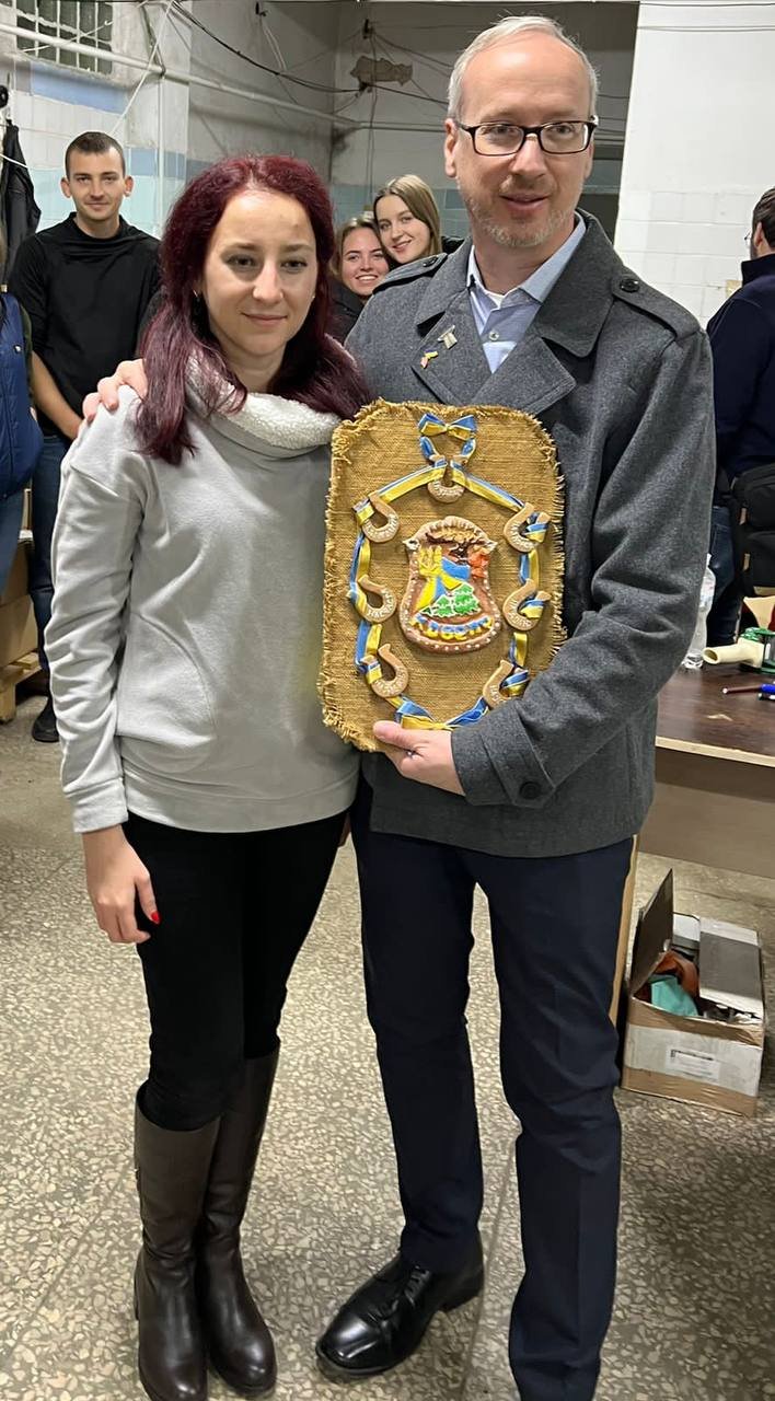 Мера приємно вразив подарунок, зроблений власноруч учнями 13-го Ковельського ліцею і переданий вчителькою-волонтеркою Тетяною Шинкарук.