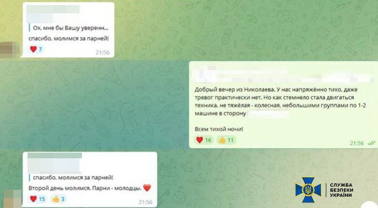 Насамперед зловмисниця передавала інформацію щодо переміщення військової техніки ЗСУ, в тому числі про місця дислокації повітряної військової техніки на території Миколаївської області.