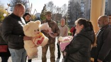 Нажаль, зустріти новоспечену матусю з маленькою донечкою не зміг військовослужбовець Ігор Сімончук.