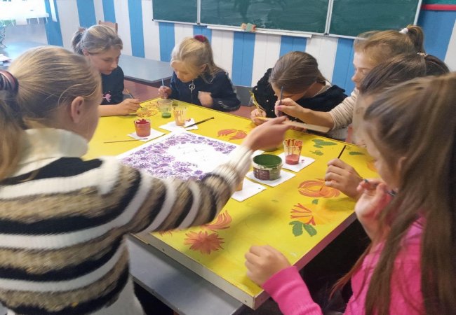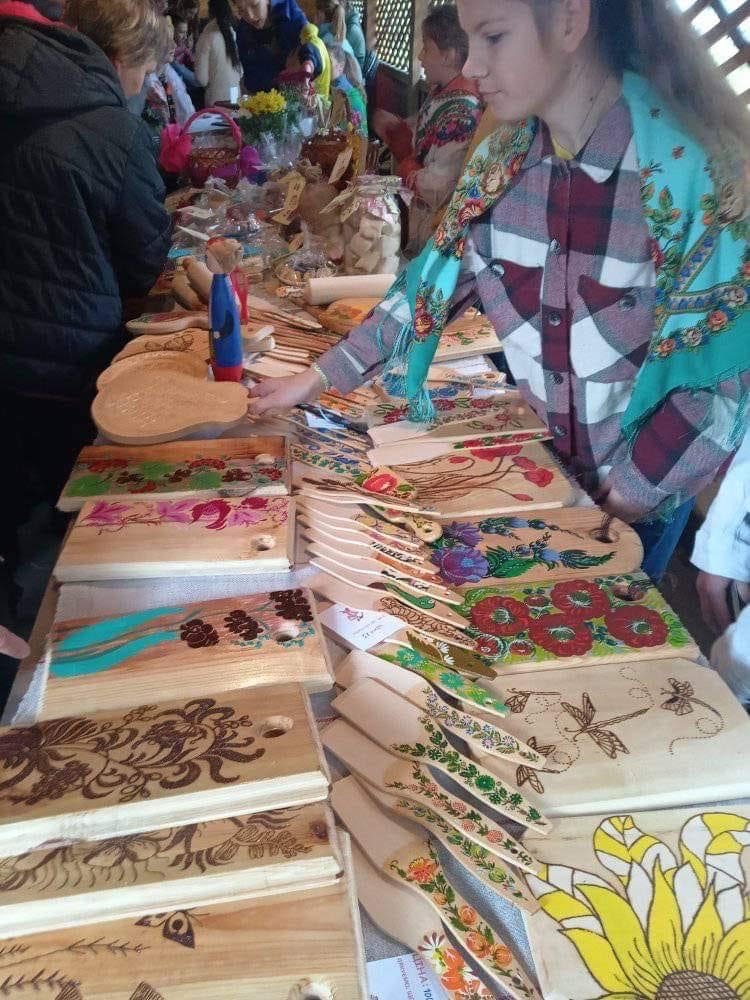 Про те, що народне мистецтво захоплює дитячі серця, свідчить їхнє постійне бажання вигадувати щось нове. Заняття у гуртку художниці (в ньому лише дівчатка) не припиняли попри воєнний час. Радше навпаки – почуття глибокого патріотизму, прагнення зберегти та примножити українські традиції стало сильнішим. А відтак юні майстрині живопису долучалися до волонтерської діяльності. Часто вони працюють у творчому тандемі із хлопцями. Останні на уроках трудового навчання виготовляють різноманітні вироби із дерева, а дівчата їх розмальовують. Наприклад, на благодійному ярмарку, який відбувся У Великій Глуші на Покрову (про захід розповідали на сторінках “Полісся”), для продажу спільно представили велику колекцію кухонного начиння.